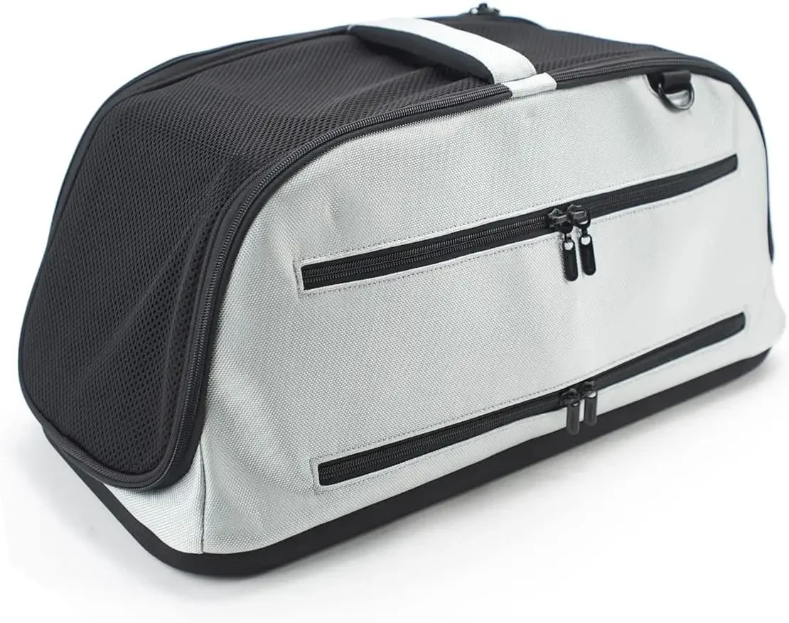 This offers an innovative solution to the many conflicting airline size restrictions put on pet carriers by providing size versatility through flexibility. The design also keeps with our strict safety standards and high quality material and color selection.