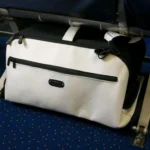 It’s unique design allows it to contract in size to fit in the space below most airline seats during the restricted times of takeoff and landing.